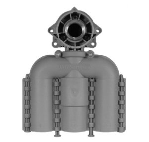 für Grundplatten-Befestigung, Dosenkörper zweiteilig aus Kunststoff, mit biegsamen Dosenfuss, Bogen aus Rotguss, mit Innengewinde und Bördel-Verschraubung mehrweniger